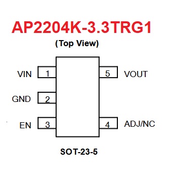 AP2204K-3.3TRG1, Wide Input Voltage Range, 150mA Uldo Regulator. Marking: GAH, Package: SOT-23-5. LDO Regulator Pos 3.3V, 0.25A