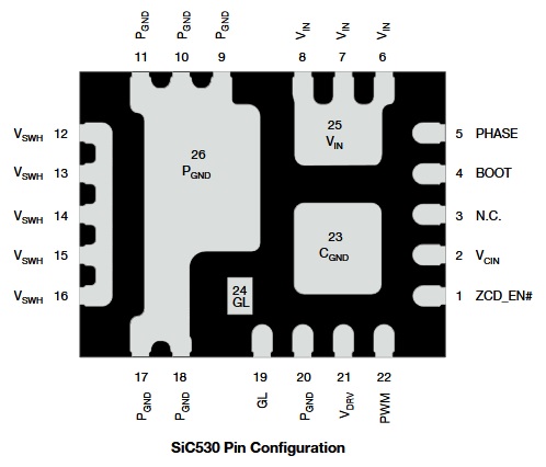 SIC530, 30 A VRPower Integrated Power Stage. Package: PowerPAK MLP4535-22L. Utilizado en Dell PRECISION 3510